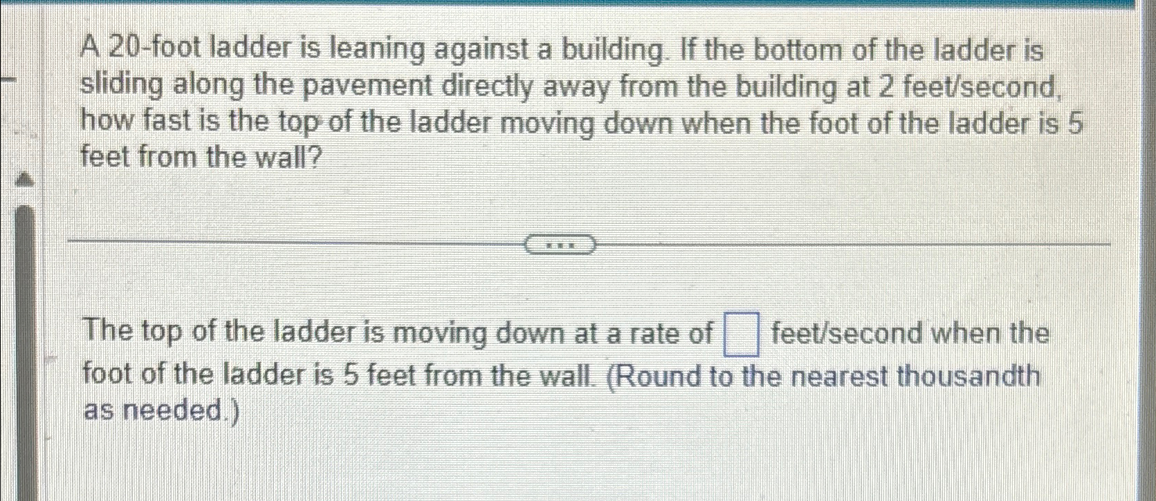 Solved A 20 foot ladder is leaning against a building. If