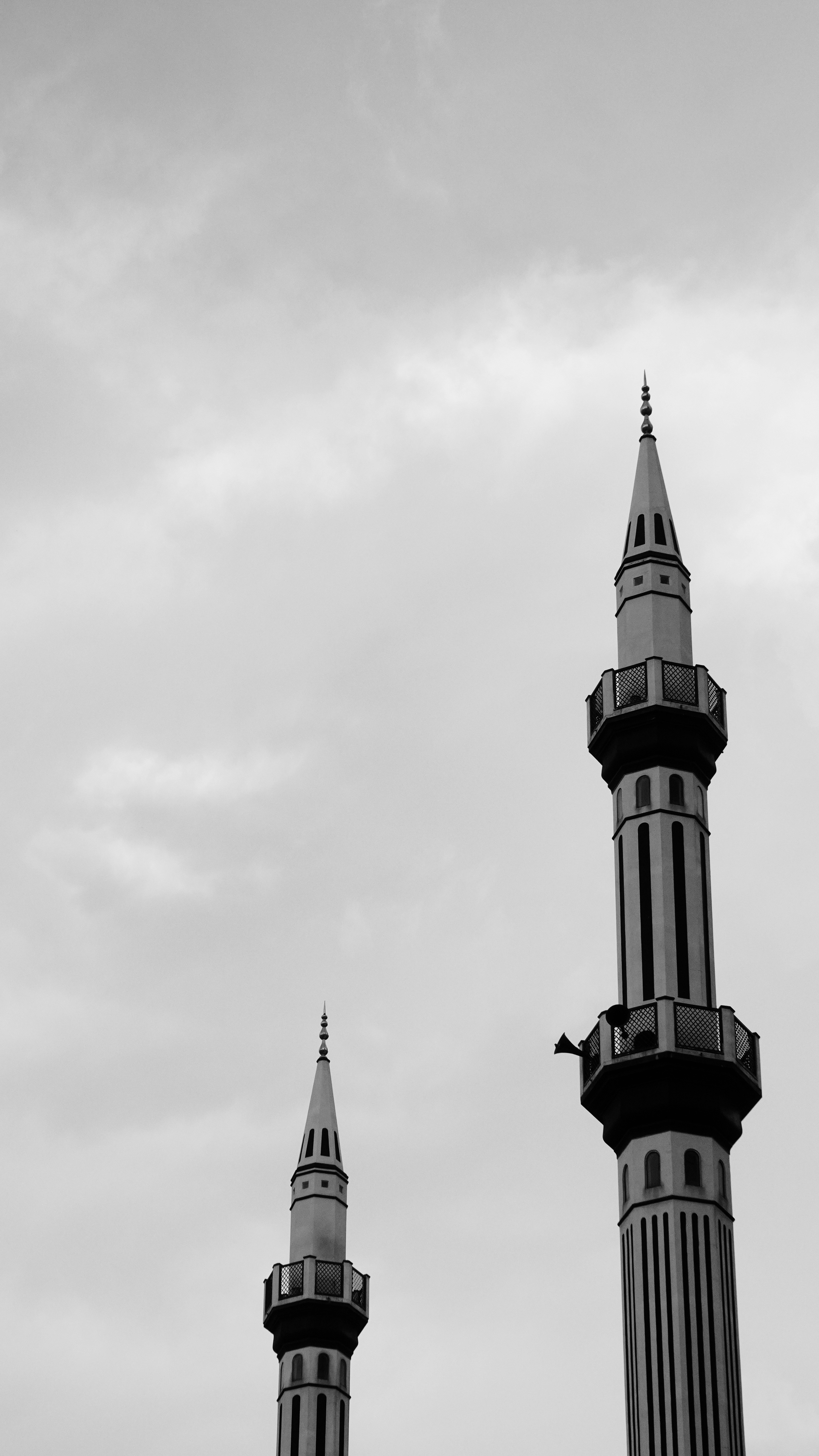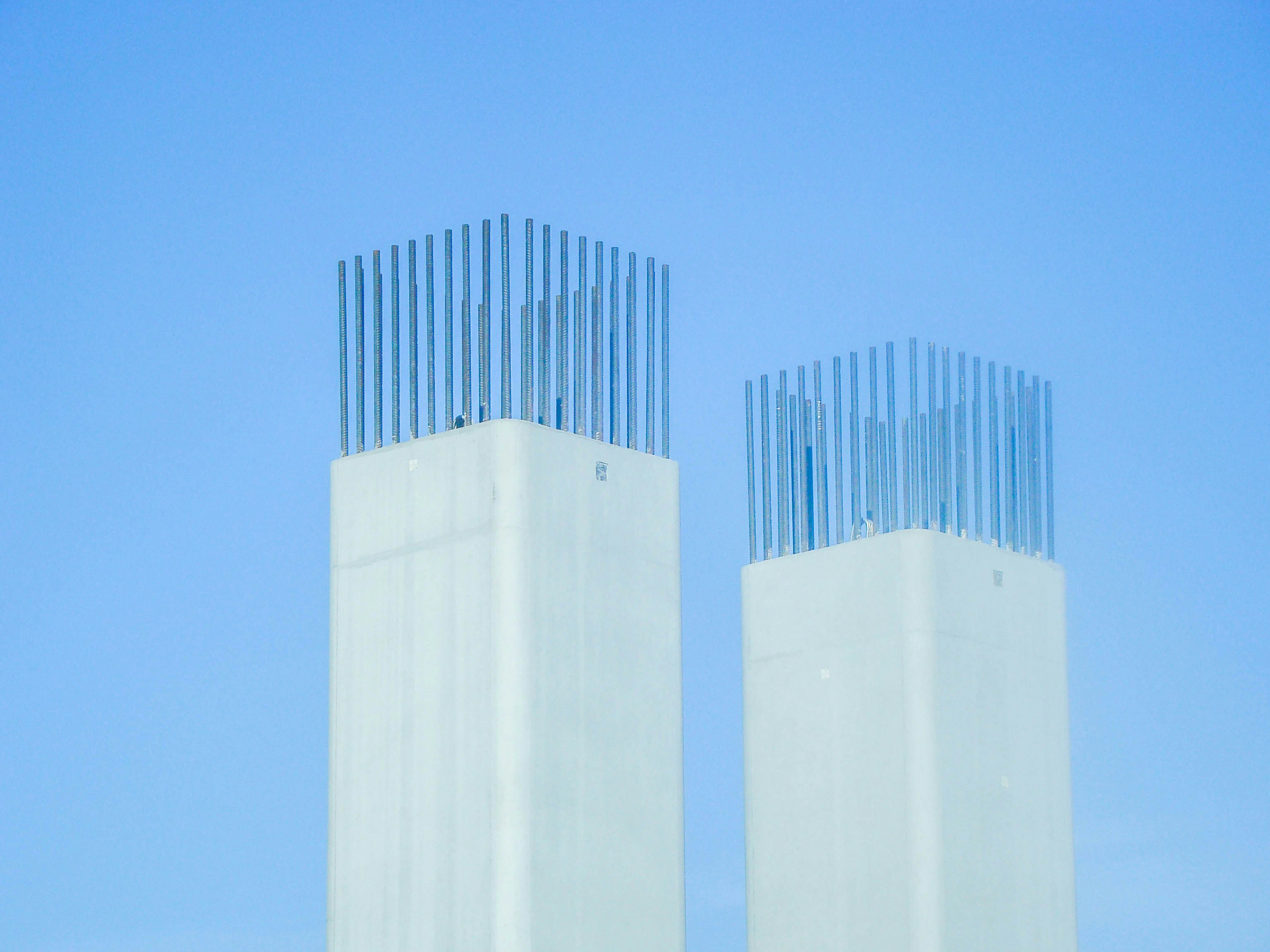 A couple of tall white towers sitting next to each other photo Free