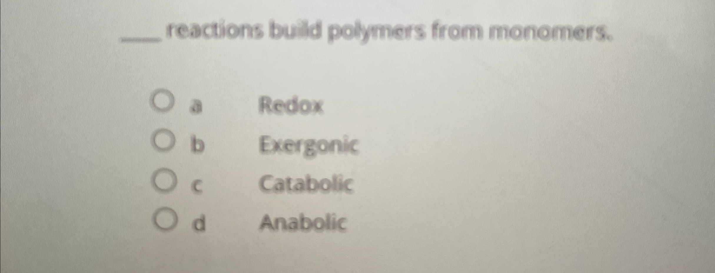Solved q, reactions buld polymers from monomers.a Redoxb