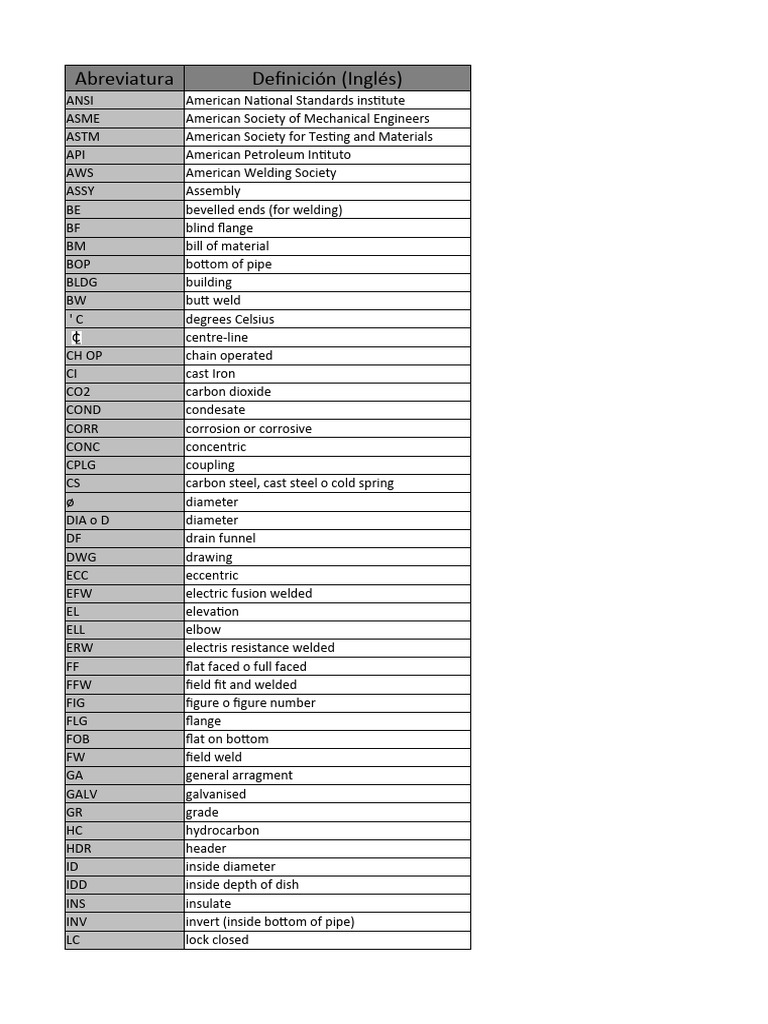 abreviaturasinglesespanol PDF Pipe (Fluid Conveyance) Building