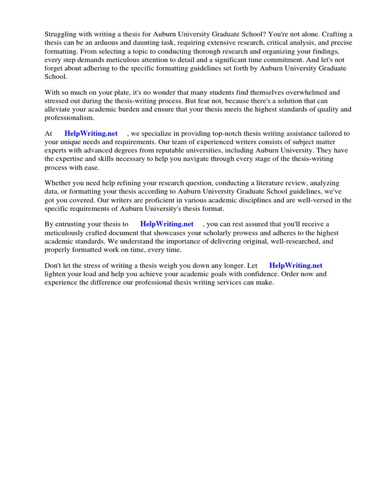 Auburn University Graduate School Thesis Format Download Free PDF