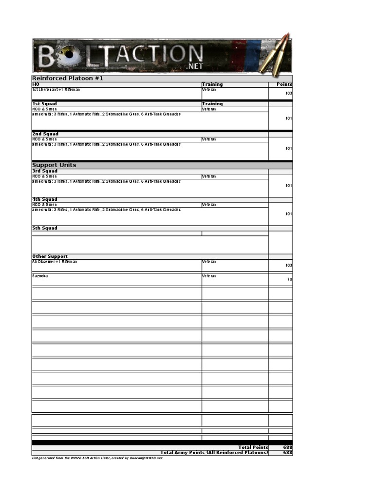 Bolt action list generator Platoon Battles