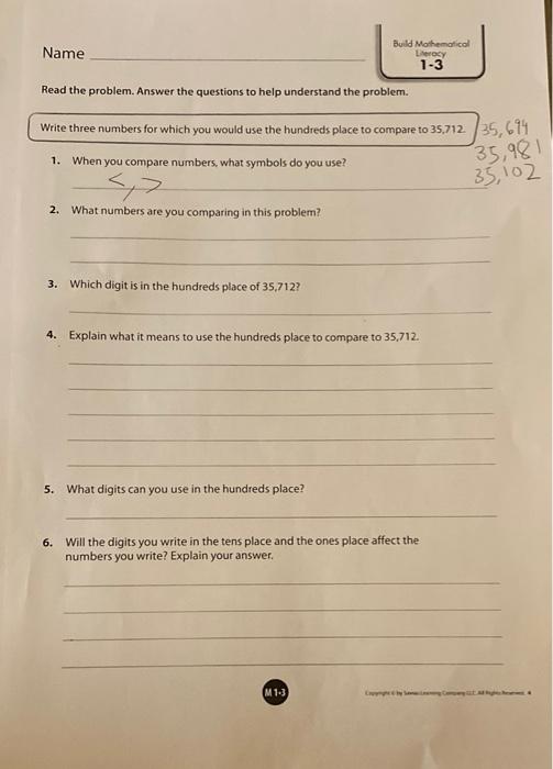 Solved Name Build Mathematical Literacy 13 Read the