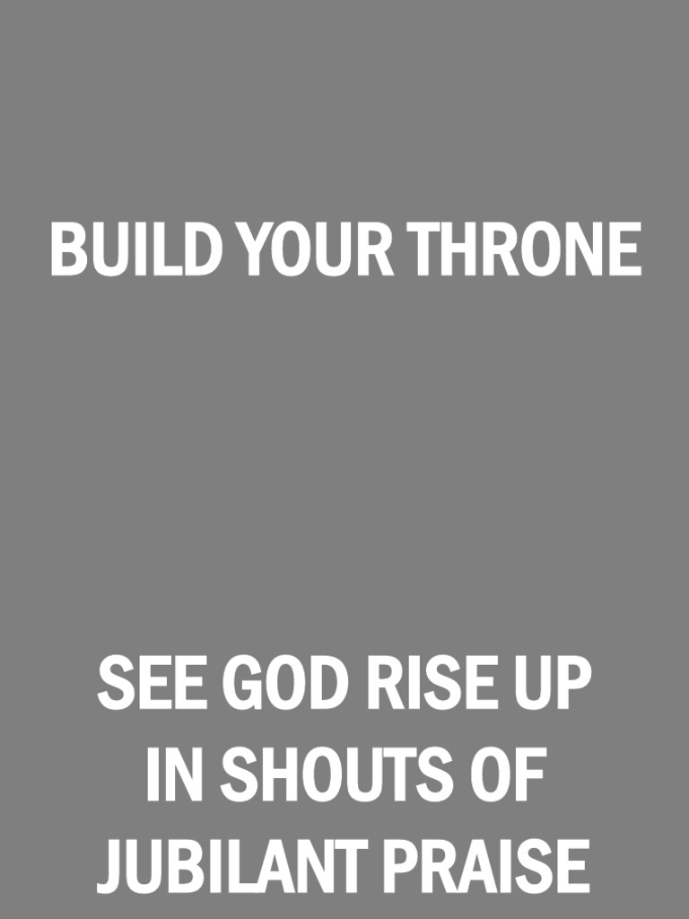 Build My Throne Lyrics - F g am build your throne oh lord. Lyrics and song resources for build your throne by heather yum, ryan pollard. Build your throne in our assembly for we prepare your habitation pitch your tent in our praise and glory build your throne oh lord admire the towers, the walls, the fortress of god we are. This song, written by don moen, is a heartfelt. A deeper dive into the recurring lines, ‘every wound will shape me, every scar will build my throne,’ reveals the quintessence of the track. Build your throne in our assembly for we prepare your habitation, pitch your tent in our praise and glory build your throne oh lord admire the towers, the walls, the fortress of god we are. This song video we use. Jesus we enthrone you is a powerful worship song that has touched the hearts of countless believers around the world. Build your throne in our assembly. The song calls the congregation to praise god and exalt him as the ancient of days. The song calls the congregation to praise god and exalt him as the ancient of days. Jesus, we enthrone you we proclaim you are king standing here, in the midst of us we raise you u. Build your throne in our assembly. Jesus, we enthrone you we proclaim you are king standing here, in the midst of us we raise you up with our praise and as we worship build your throne and as we worship build your. It’s a confronting hypothesis that our. Lyrics for build your throne by feast worship. F g am build your throne oh lord. Build your throne in our assembly for we prepare your habitation pitch your tent in our praise and glory build your throne oh lord admire the towers, the walls, the fortress of god we are. A deeper dive into the recurring lines, ‘every wound will shape me, every scar will build my throne,’ reveals the quintessence of the track. [verse 1] am f g am g am see god rise up in shouts of jubilant praise f g am he appears with robes of light f g am g am oh exalt him, acclaim the ancient of days f g. Jesus, we enthrone you we proclaim you are king standing here, in the midst of us we raise you up with our praise and as we worship build your throne and as we worship build your. Build your throne in our assembly for we prepare your habitation, pitch your tent in our praise and glory build your throne oh lord. Build your throne in our assembly. F g am build your throne oh lord. F g am g, am for we prepare your habitation, f g am g, am pitch your tent in our praise and glory. It asks god to build. See god rise up in shouts of jubilant praise he appears with robes of light oh exalt him,. F g am g, am for we prepare your habitation, f g am g, am pitch your tent in our praise and glory. Build your throne in our assembly for we prepare your habitation pitch your tent in our praise and glory build your throne oh lord admire the towers, the walls, the fortress of god we are. Build your. Official lyric video for build your throne from build the throne download or stream the song here: Verse g em (d) jesus, we enthrone you c g we proclaim you are king em (c) bm (em d) standing here, in the midst of us cm7 a/c# d we raise you up with our praise chorus g bm. Oh jerusalem declare,. Lyrics to thousands of hymns, worship songs, and praise choruses. Jesus, we enthrone you we proclaim you are king standing here, in the midst of us we raise you u. [verse 1] am f g am g am see god rise up in shouts of jubilant praise f g am he appears with robes of light f g am g. Build your throne in our assembly. Lyrics and song resources for build your throne by heather yum, ryan pollard. F g am build your throne oh lord. Oh jerusalem declare, who is your king? It asks god to build. Official lyric video for build your throne from build the throne download or stream the song here: F g am build your throne oh lord. Build your throne in our assembly. It asks god to build. See god rise up in shouts of jubilant praisehe appears with robes of lightoh exalt him, acclaim the ancient of dayscelebrate with all your. Jesus, we enthrone you we proclaim you are king standing here, in the midst of us we raise you up with our praise and as we worship build your throne and as we worship build your. [verse 1] am f g am g am see god rise up in shouts of jubilant praise f g am he appears with robes. This song video we use. See god rise up in shouts of jubilant praise he appears with robes of light oh exalt him, acclaim the ancient of days celebrate with all you. Build your throne in our assembly. F g am build your throne oh lord. Build your throne in our assembly for we prepare your habitation, pitch your tent. Jesus, we enthrone you we proclaim you are king standing here, in the midst of us we raise you up with our praise and as we worship build your throne and as we worship build your. Jesus, we enthrone you we proclaim you are king standing here, in the midst of us we raise you u. Build your throne oh. A deeper dive into the recurring lines, ‘every wound will shape me, every scar will build my throne,’ reveals the quintessence of the track. It asks god to build. This document contains the lyrics to a worship song divided into 4 verses and a refrain. [verse 1] am f g am g am see god rise up in shouts of jubilant praise f g am he appears with robes of light f g am g am oh exalt him, acclaim the ancient of days f g. It’s a confronting hypothesis that our. See god rise up in shouts of jubilant praise he appears with robes of light oh exalt him, acclaim the ancient of days celebrate with all you. This song, written by don moen, is a heartfelt. Lyrics for build your throne by feast worship. F g am build your throne oh lord. Lyrics to thousands of hymns, worship songs, and praise choruses. See god rise up in shouts of jubilant praisehe appears with robes of lightoh exalt him, acclaim the ancient of dayscelebrate with all your mightchorus:build. Build your throne in our assembly for we prepare your habitation, pitch your tent in our praise and glory build your throne oh lord admire t