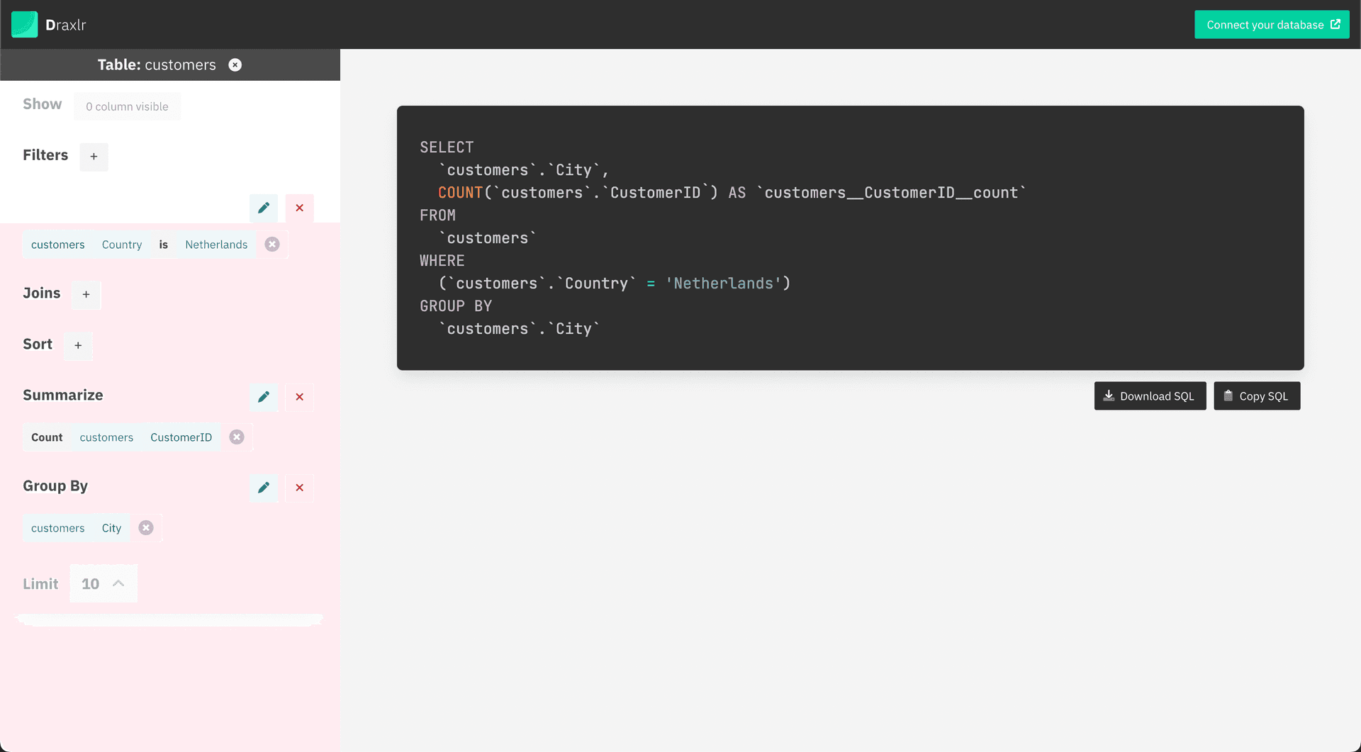 Generate SQL Queries with an interactive query builder online