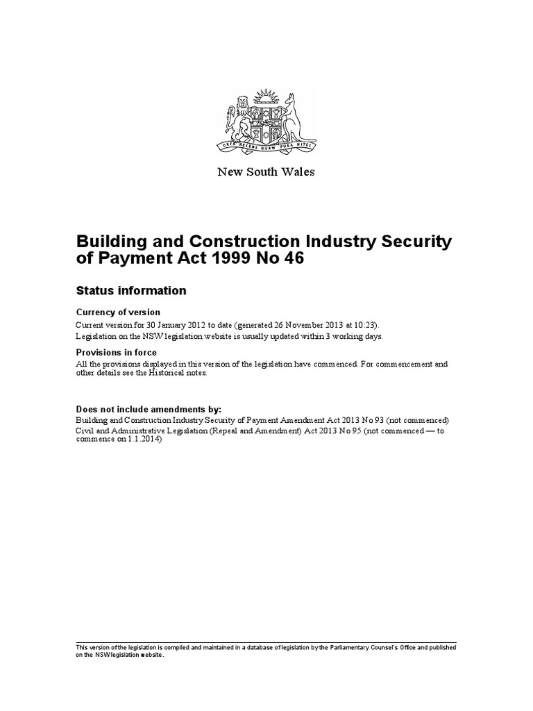Building and Construction Industry Security of Payment Act 1999 No 46