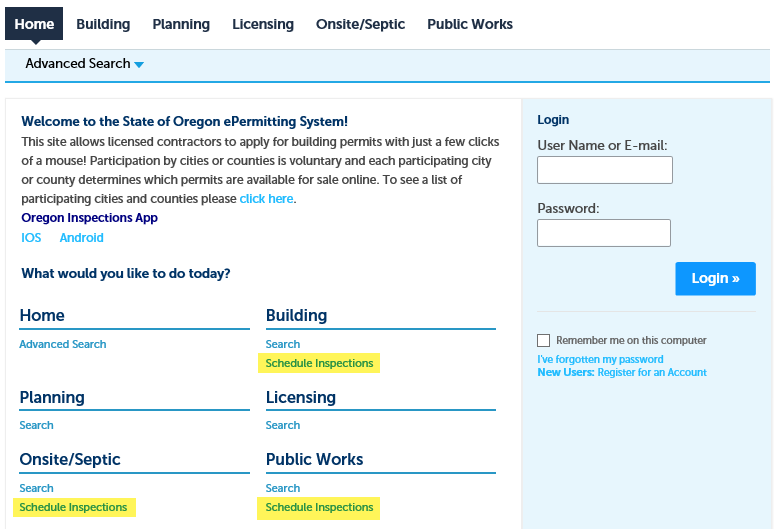 Building Codes Division Scheduling inspections online at