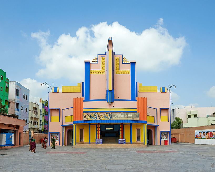 vibrant façades animate movie theater architecture in south india