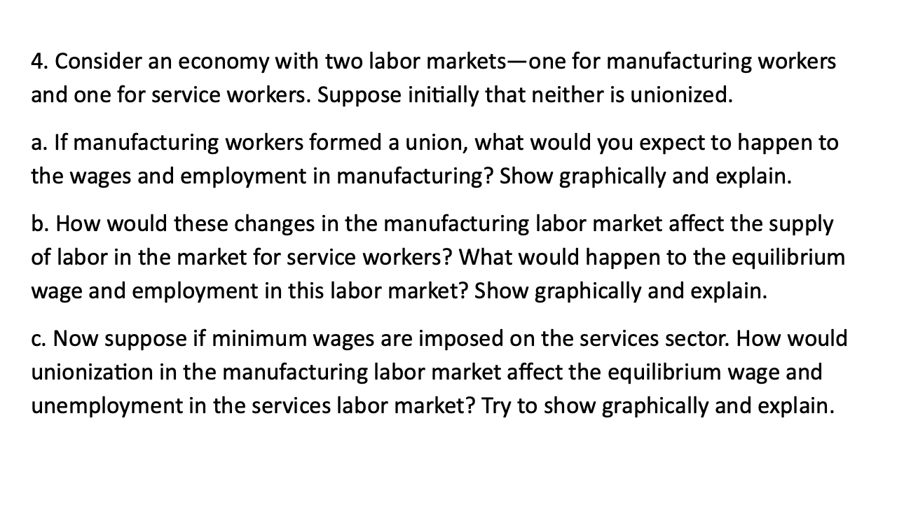 Solved 4. Consider an economy with two labor marketsone for
