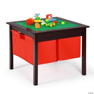 2in1 Kids Doublesided Activity Building Block Table W/ Drawers Brown