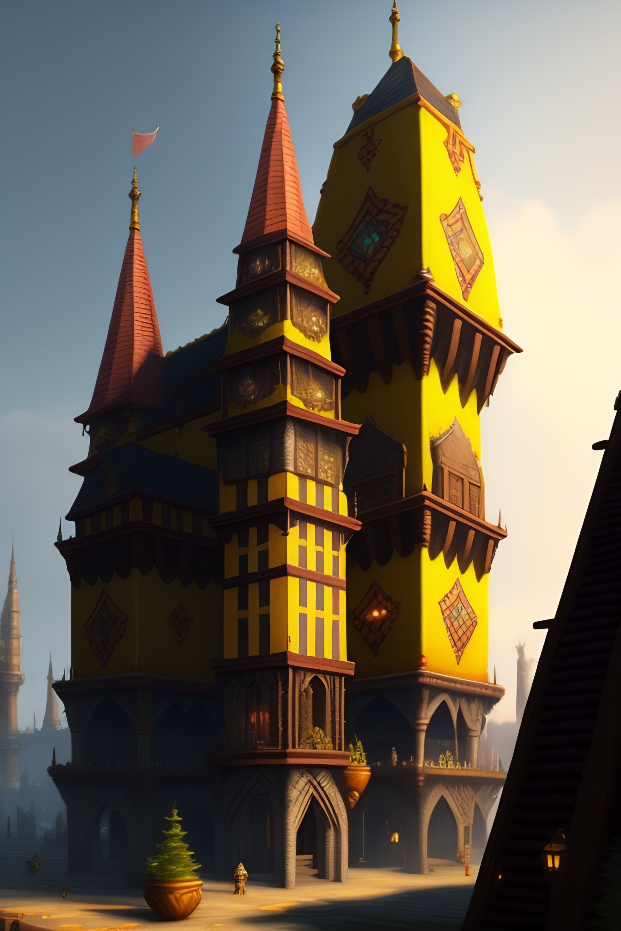 Lexica A small medieval yellow tower with two floors between city