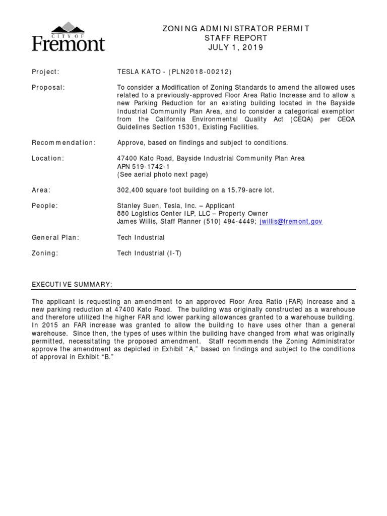 Tesla Fremont Building Modification Permit PDF Parking Economic