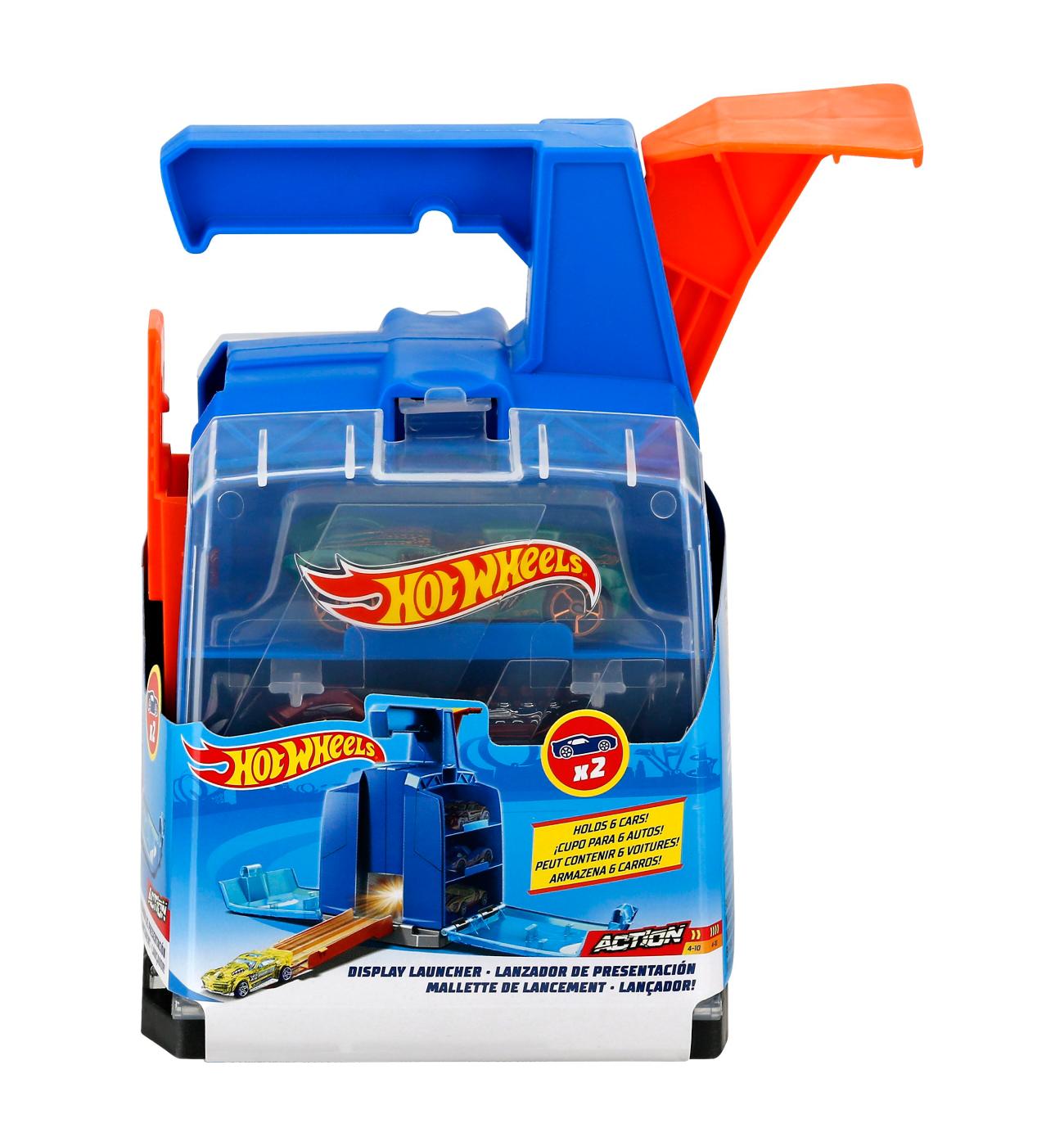 Buy Hot Wheels Toy Car Track Set, Display Launcher & 2 1:64 Scale Vehicles, Visible Storage For 6 Cars Toy Cars, Connects To Track: