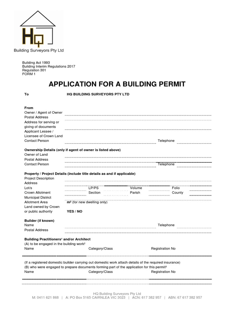 Form 1 (Application For A Building Permit) PDF Architect Common Law