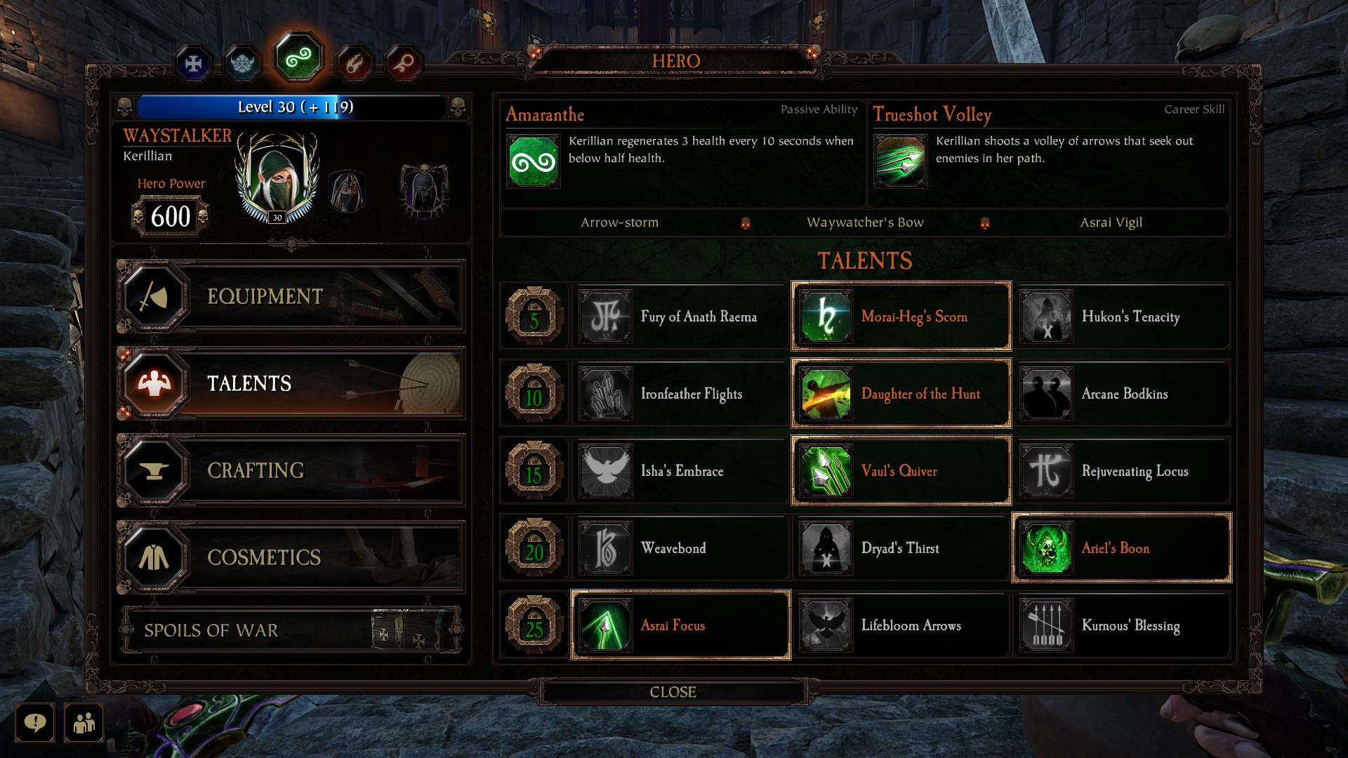Warhammer Vermintide 2 kerillian Waystalker build talent focus bow