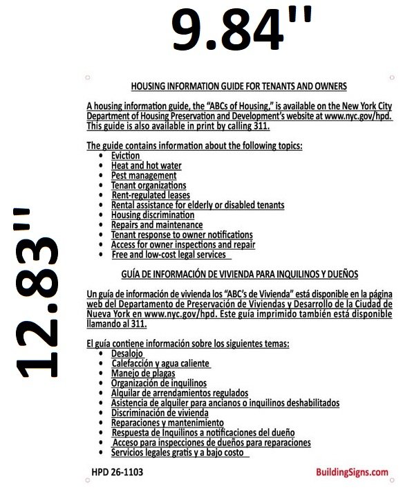 HPD HOUSING INFORMATION GUIDE SIGN HPD SIGNS THE OFFICIAL STORE