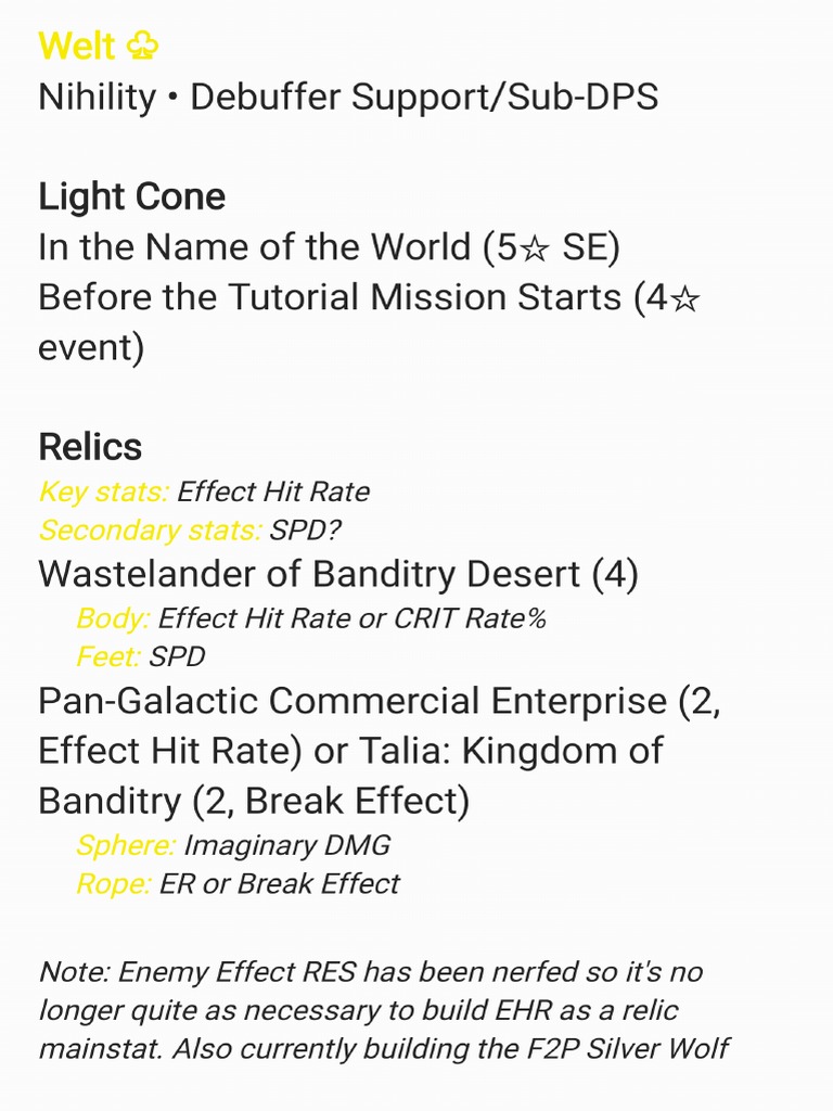 Welt Character Build HSR PDF