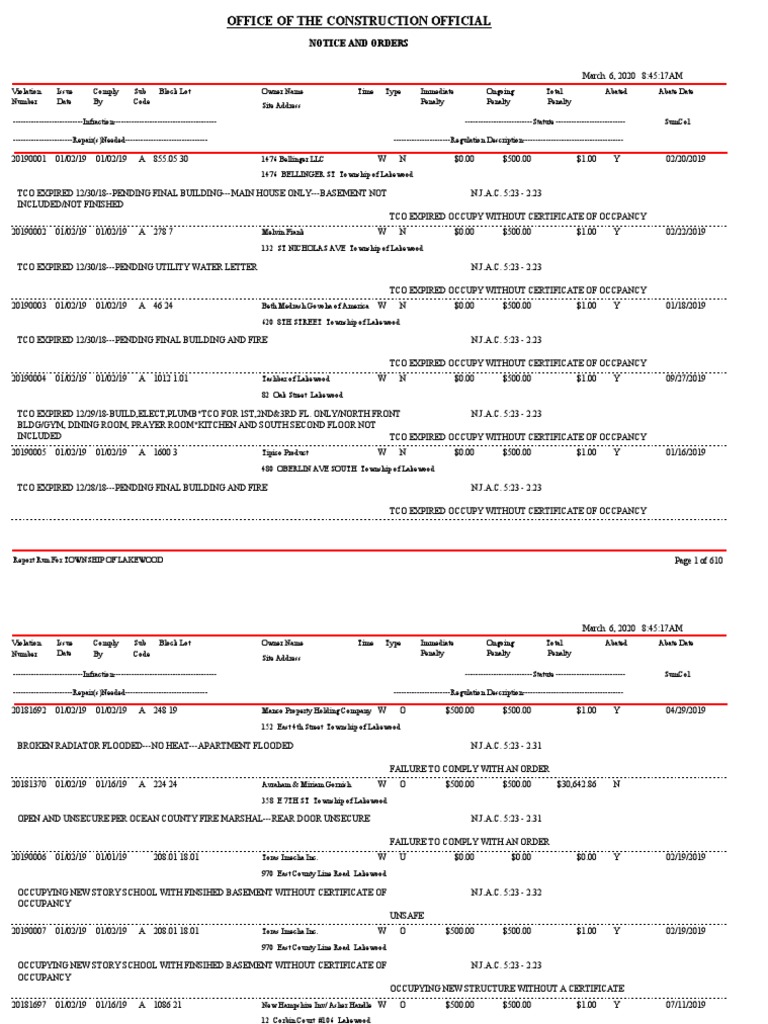 Lakewood Building Department Violations 2019 Download Free PDF