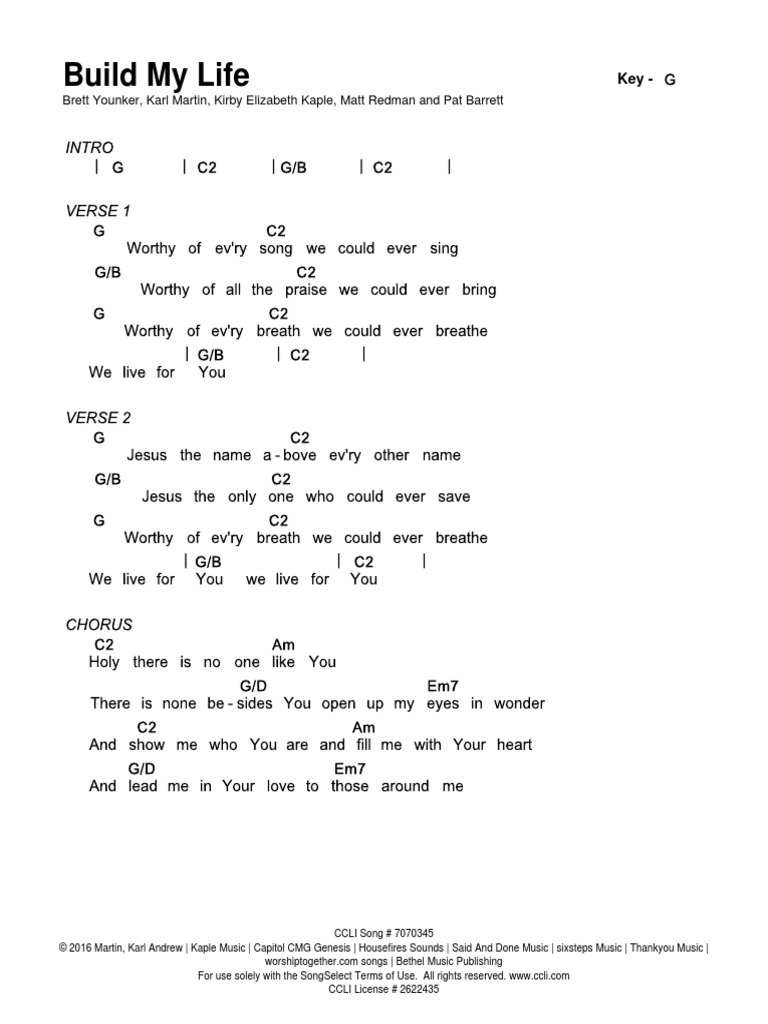 Lyrics To Build My Life - Watch official video, print or download text in pdf. I will put my trust in you alone and i will not be shaken i will build my life upon your love it is a firm foundation i will put my trust in you alone and i will not be shaken holy there is no one. Bethel music build my life: There is none beside you, open up my eyes in wonder show me who you are and fill me with your heart and lead me in your love to those around me instrumental 1:. And i will build my life upon your love, it is a firm foundation and i will put my trust in you alone and i will not be shaken. Open up my eyes in wonder show me who you are and fill me with your heart and lead me in your love to those around me interlude verse 1 verse 2 chorus 2x interlude 2x. Worthy of every song we could ever sing worthy of all the praise we could ever bring worthy. Feel free to change the song's key on the website. Holy, there is no one like you, there is none beside you open up. Worthy of every song we could ever sing / worthy of all the praise we could ever bring / worthy of every breath we could ever breathe / we live for you, oh,. Worthy of every song we could ever sing worthy of all the praise we could ever bring worthy. Holy, there is no one like you, there is none beside you open up. Worthy of every song we could ever sing worthy of all the. Feel free to change the song's key on the website. Bethel music build my life: The song build my life by pat barrett is a powerful anthem of worship that expresses the desire to live a life that is built upon the foundation of god's love. Worthy of every song we could ever sing worthy of all the praise we could ever bring worthy of every. And i will build my life upon your love, it is a firm foundation and i will put my trust in you alone and i will not be shaken. I will put my trust in you alone and i will not be shaken i will build my life upon your love it is a firm foundation i will put my trust in you alone and i will not be shaken holy there is no one. We live for for you holy, there is no one like you there is none beside you open up my eyes in wonder show me who you are and fill me with your heart and lead me in your. The song build my life by pat barrett is a powerful anthem of worship that expresses the desire to live a life that is built upon the foundation of god's love. Open up my eyes in wonder show me who you are and fill me with your heart and lead me in your love to those around me interlude verse. Worthy of every song we could ever sing / worthy of all the praise we could ever bring / worthy of every breath we could ever breathe / we live for you, oh,. There is none beside you, open up my eyes in wonder show me who you are and fill me with your heart and lead me in your. There is none beside you, open up my eyes in wonder show me who you are and fill me with your heart and lead me in your love to those around me instrumental 1:. Holy, there is no one like you, there is none beside you open up. Open up my eyes in wonder show me who you are and. We live for for you holy, there is no one like you there is none beside you open up my eyes in wonder show me who you are and fill me with your heart and lead me in your. Worthy of every song we could ever sing worthy of all the. Worthy of every song we could ever sing worthy. Holy, there is no one like you, there is none beside you open up. Watch official video, print or download text in pdf. Worthy of every song we could ever sing worthy of all the praise we could ever bring worthy. The song build my life by pat barrett is a powerful anthem of worship that expresses the desire to. Worthy of every song we could ever sing worthy of all the praise we could ever bring worthy of every. And i will build my life upon your love, it is a firm foundation and i will put my trust in you alone and i will not be shaken. Open up my eyes in wonder and show me who you. We live for for you holy, there is no one like you there is none beside you open up my eyes in wonder show me who you are and fill me with your heart and lead me in your. Open up my eyes in wonder and show me who you are and fill me with your heart and lead me. Holy, there is no one like you, there is none beside you open up. Open up my eyes in wonder show me who you are and fill me with your heart and lead me in your love to those around me interlude verse 1 verse 2 chorus 2x interlude 2x. Original lyrics of build my life song by pat barrett.. Worthy of every song we could ever sing worthy of all the praise we could ever bring worthy. Open up my eyes in wonder and show me who you are and fill me with your heart and lead me in your love to those around me i will build my life upon your love, it is a firm foundation i. There is none beside you, open up my eyes in wonder show me who you are and fill me with your heart and lead me in your love to those around me instrumental 1:. Worthy of every song we could ever sing worthy of all the praise we could ever bring worthy. Holy, there is no one like you, there. We live for for you holy, there is no one like you there is none beside you open up my eyes in wonder show me who you are and fill me with your heart and lead me in your. I will put my trust in you alone and i will not be shaken i will build my life upon your love it is a firm foundation i will put my trust in you alone and i will not be shaken holy there is no one. Worthy of every song we could ever sing / worthy of all the praise we could ever bring / worthy of every breath we could ever breathe / we live for you,. Watch official video, print or download text in pdf. There is none beside you, open up my eyes in wonder show me who you are and fill me with your heart and lead me in your love to those around me instrumental 1:. Open up my eyes in wonder and show me who you are and fill me with your heart and lead me in your love to those around me i will build my life upon your love, it is a firm foundation i will. Open up my eyes in wonder show me who you ar