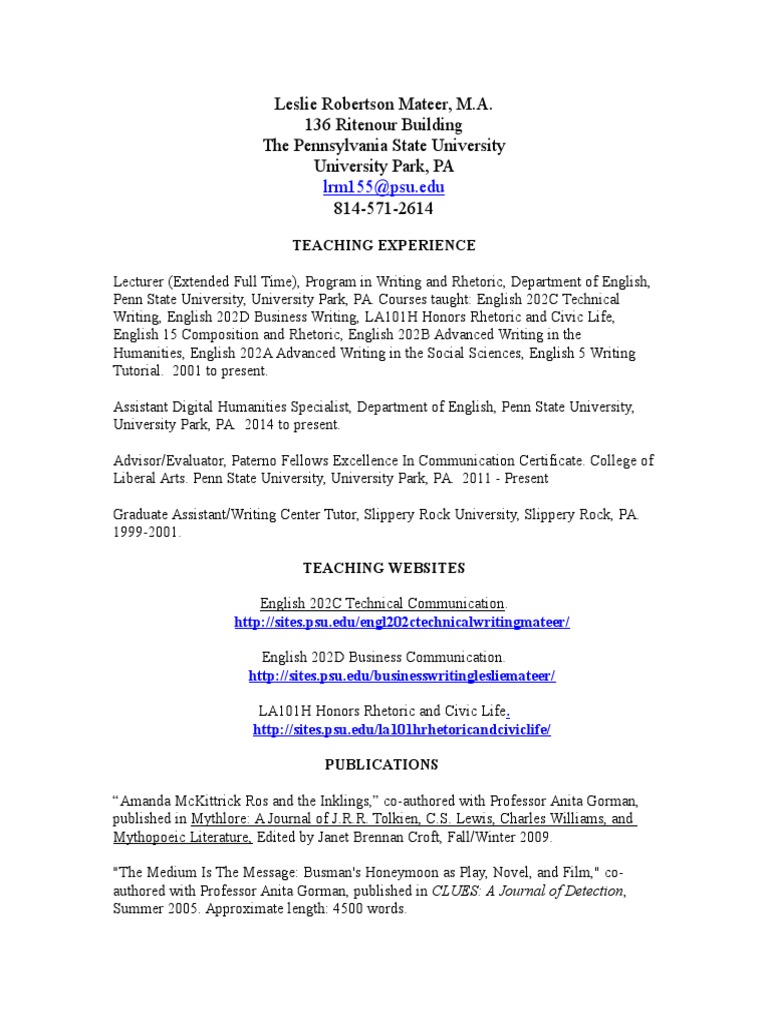 Leslie Robertson Mateer, M.A. 136 Ritenour Building The Pennsylvania