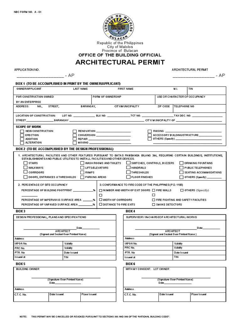 Malolos ArchitecturalPermitfrontandback PDF