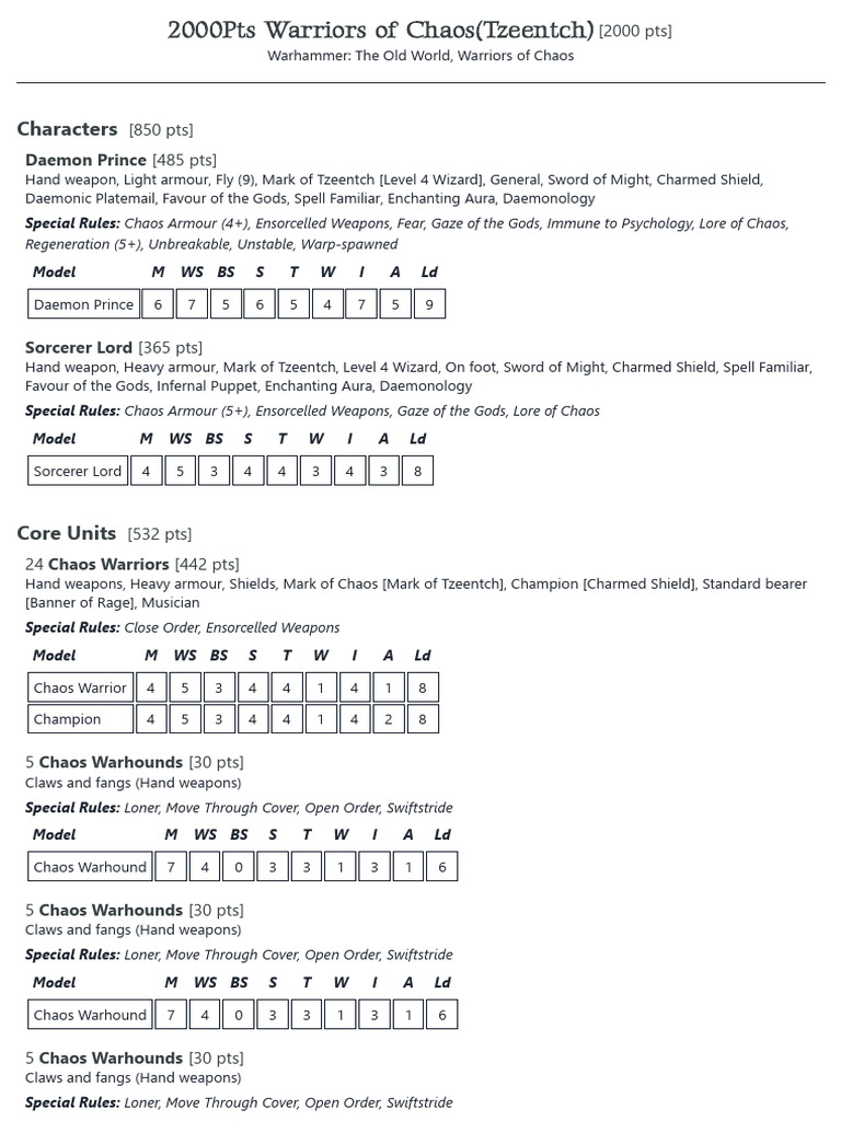 2000Pts Warriors of Chaos (Tzeentch) Old World Builder PDF