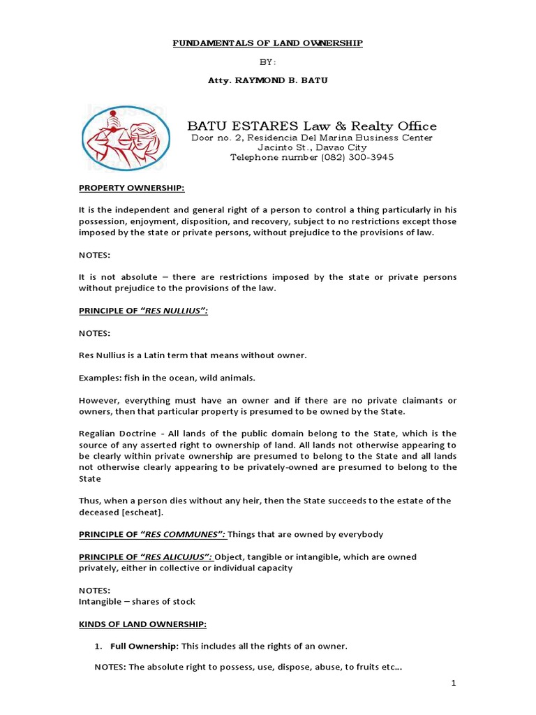 Fundamentals of Land Ownership Notes 2013 Lease Ownership