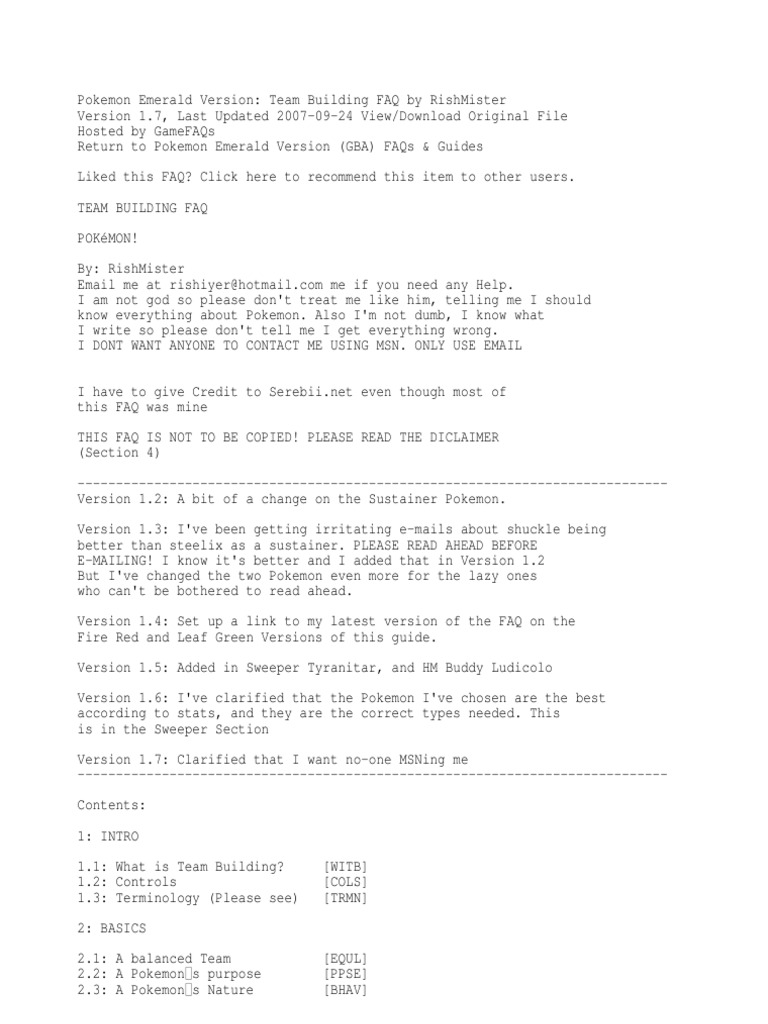 The Document Is A Guide To Team Building In The Pokemon Emerald Video Game.