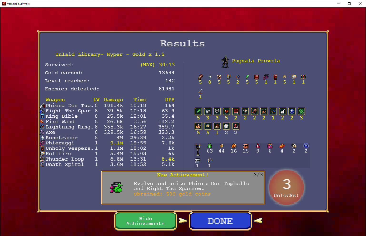 PUGNALA Vampire Survivors BUILD List