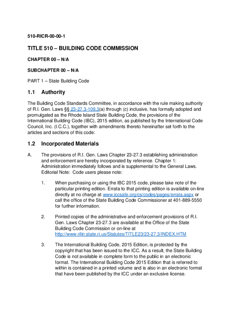 Fillable Online RHODE ISLAND STATE BUILDING CODE SBC2 Rhode Island One