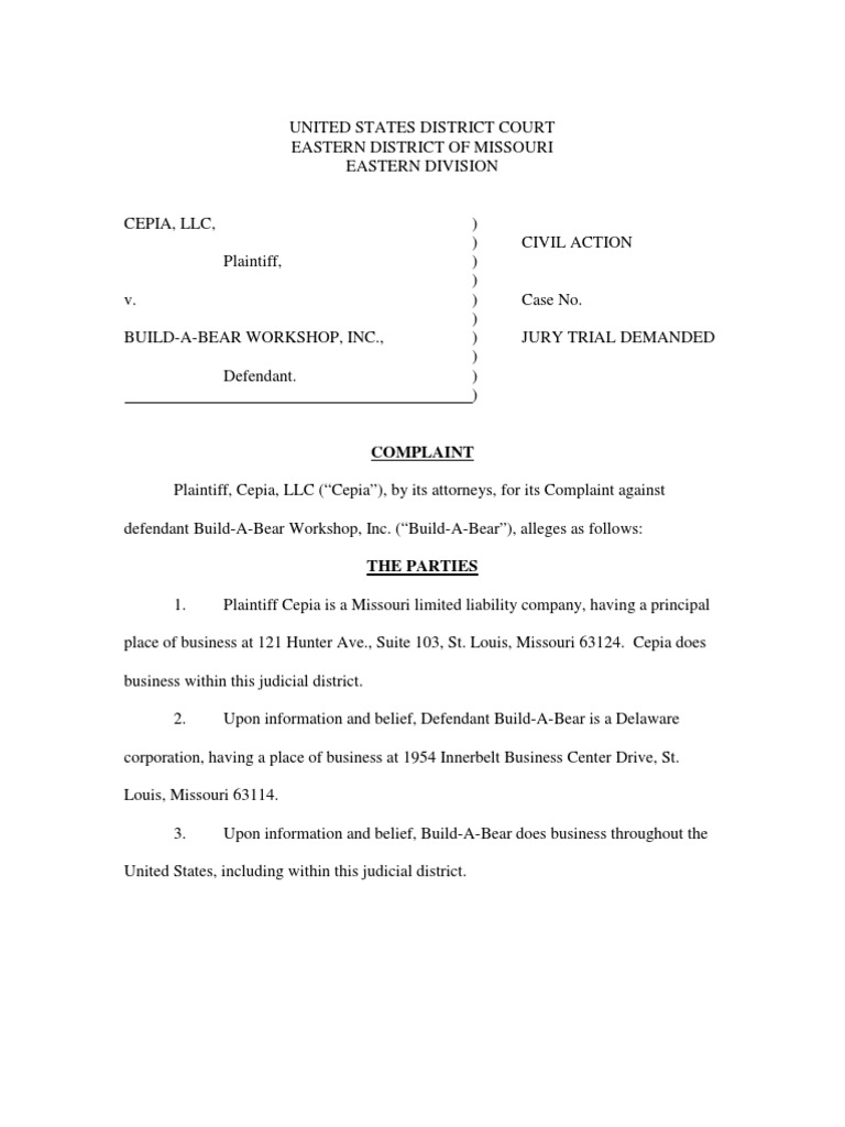 Cepia v. BuildABear PDF Lawsuit Copyright