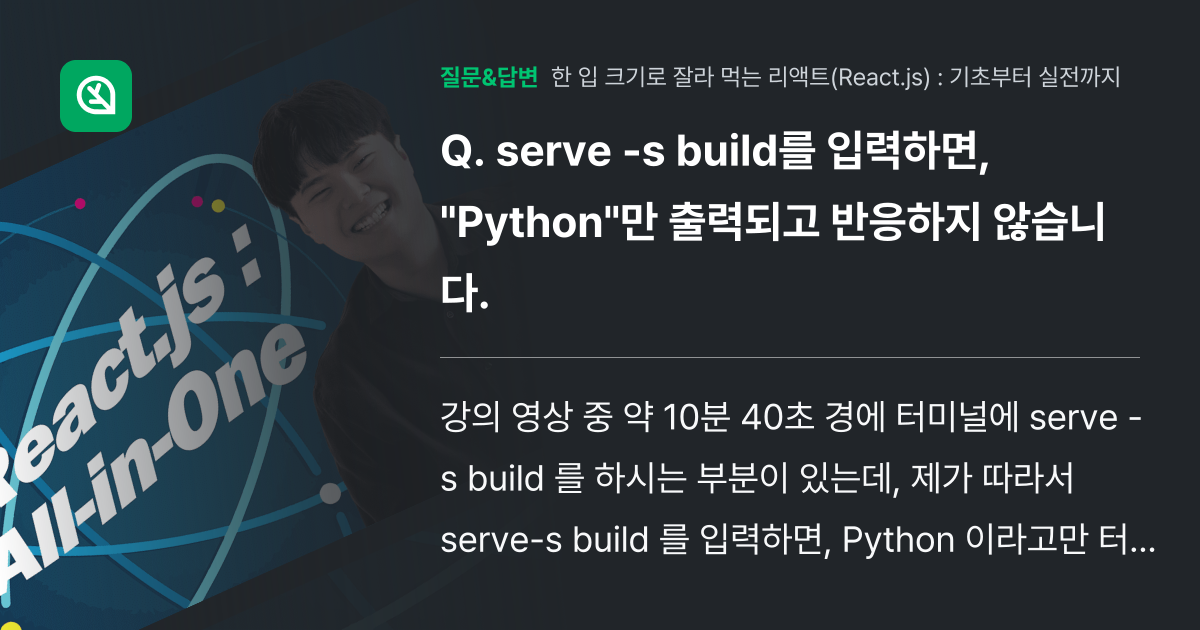 serve s build를 입력하면, "Python"만 출력되고... 인프런 커뮤니티 질문&답변