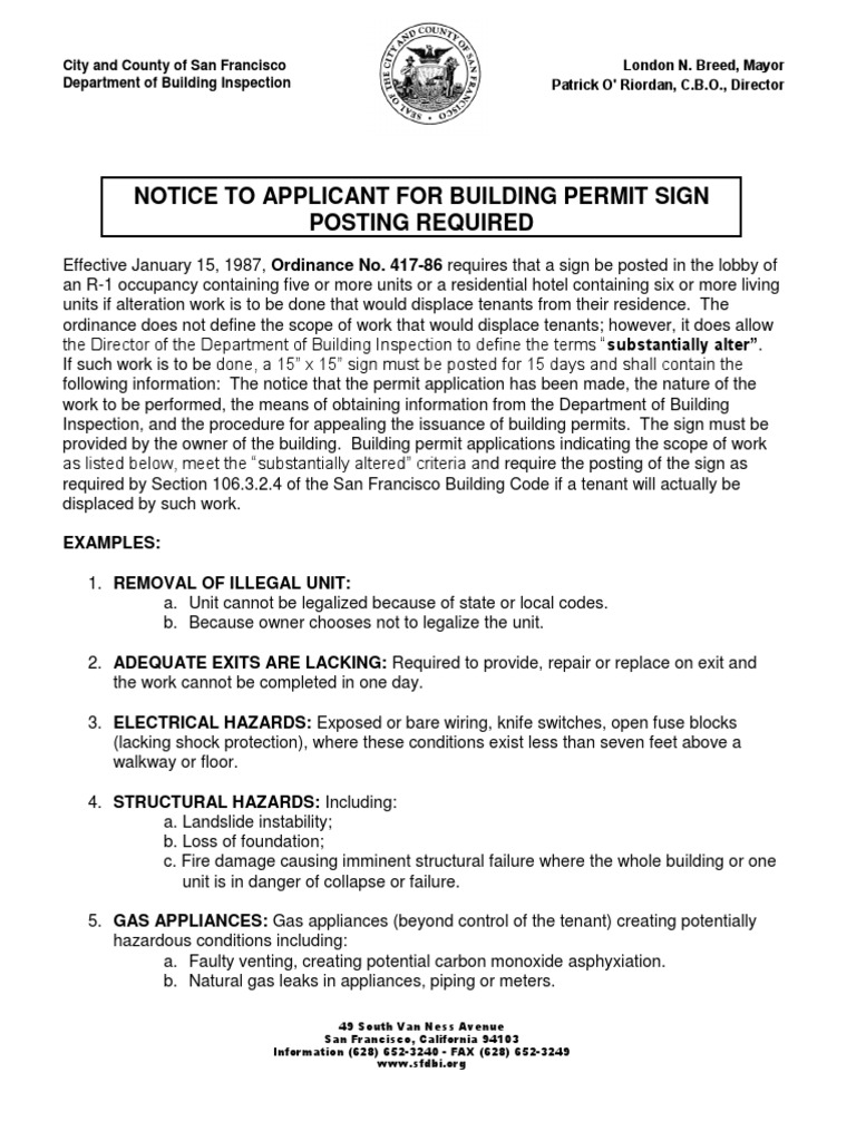 SF building permit sign posting requirements PDF Safety