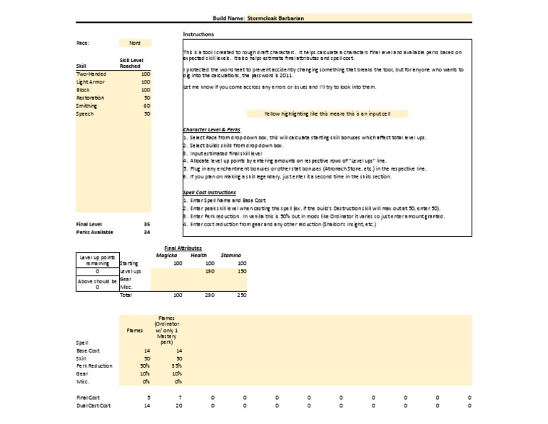 Skyrim Build Planner PDF Role Playing Games Gaming
