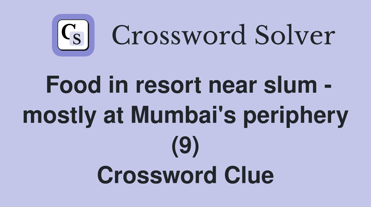 Food in resort near slum mostly at Mumbai's periphery (9) Crossword