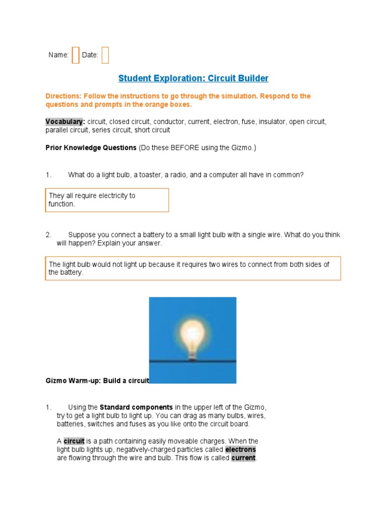 Circuits Gizmo Answer Key Activity B Student Exploration Ans