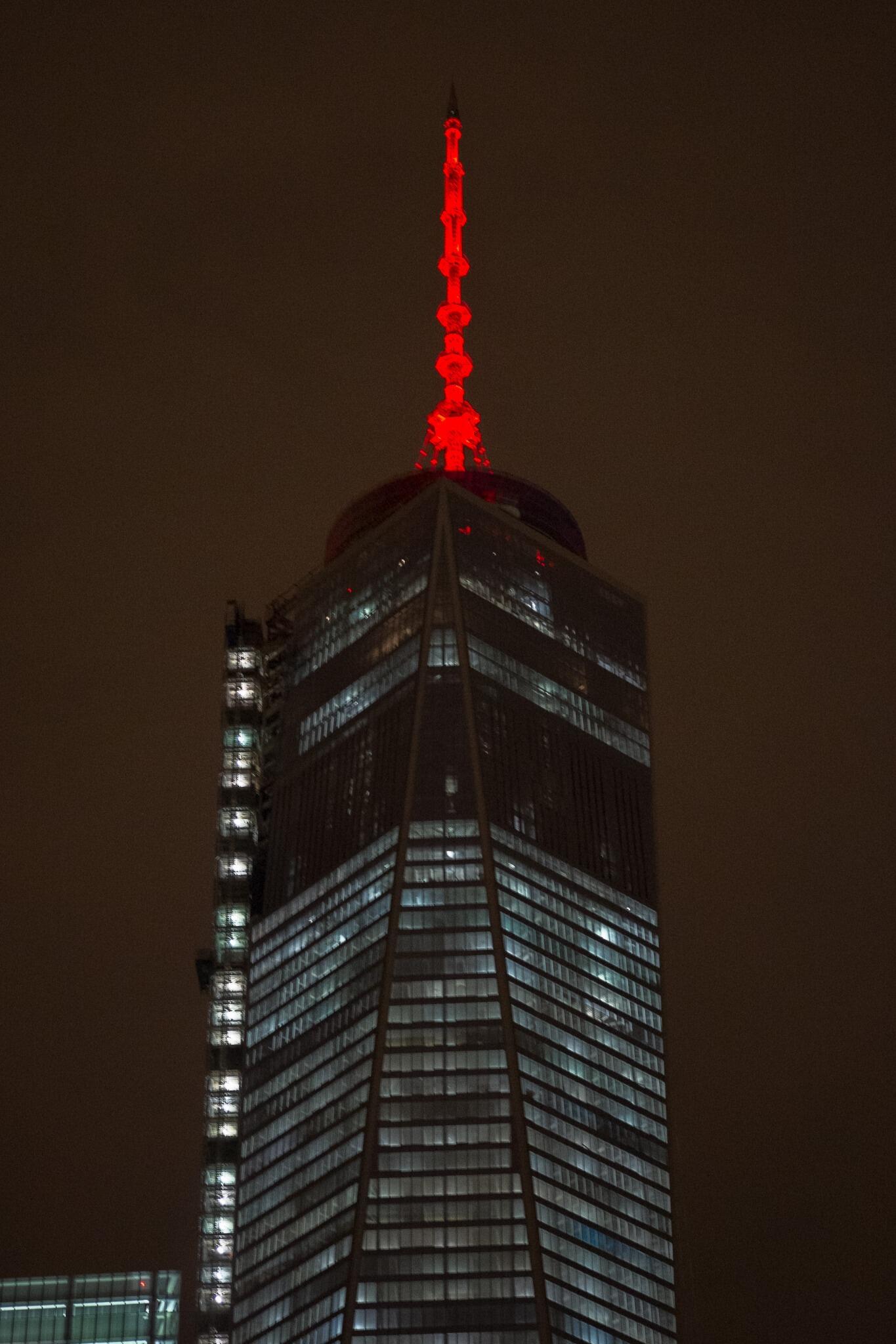 The Freedom Tower just got it's spire lit, is now a legitimate 10/10