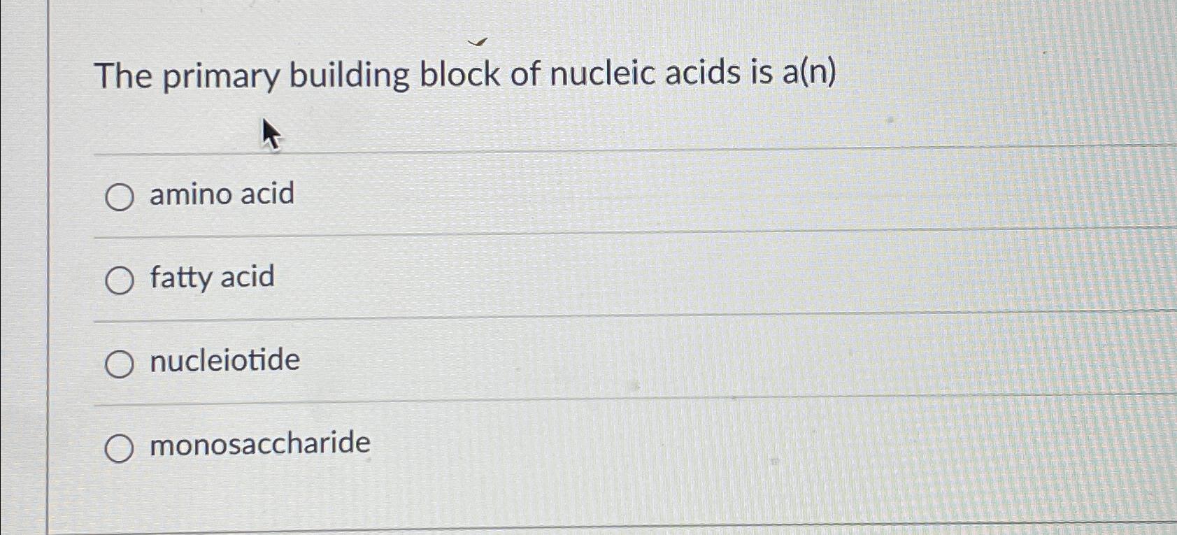 Solved The primary building block of nucleic acids is