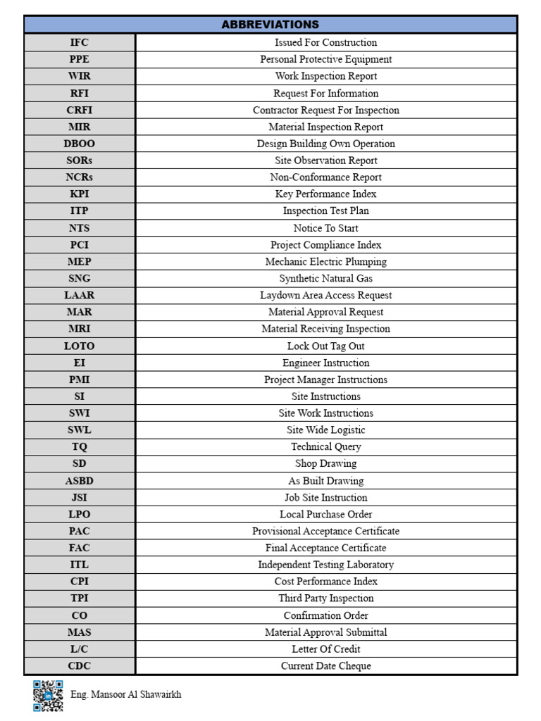 Abbreviations Used in Engineering and Construction Download Free PDF