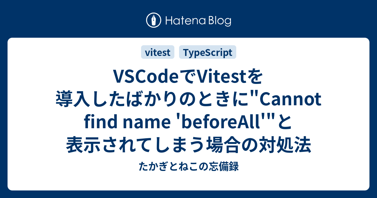 VSCodeでVitestを導入したばかりのときに"Cannot find name 'beforeAll'"と表示されてしまう場合の対処法