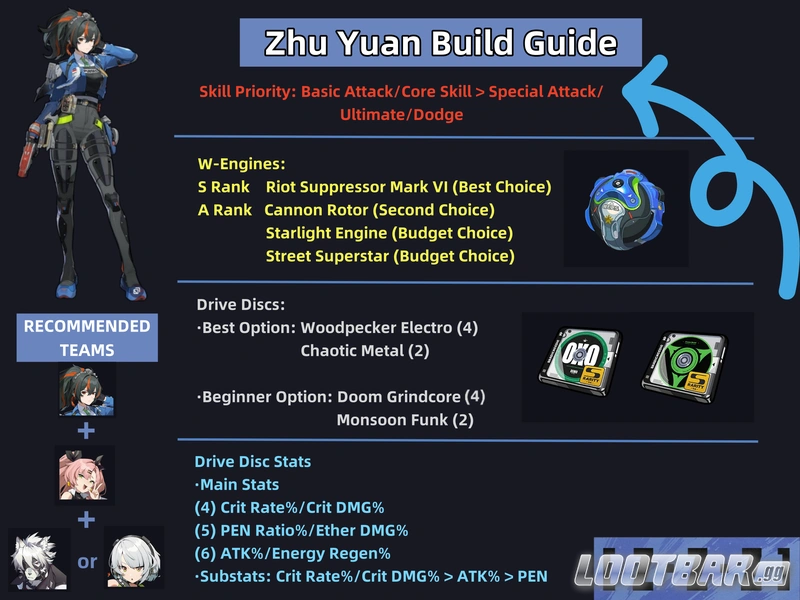 Zenless Zone Zero Zhu Yuan Build Guide Skill Priority, Best WEngines